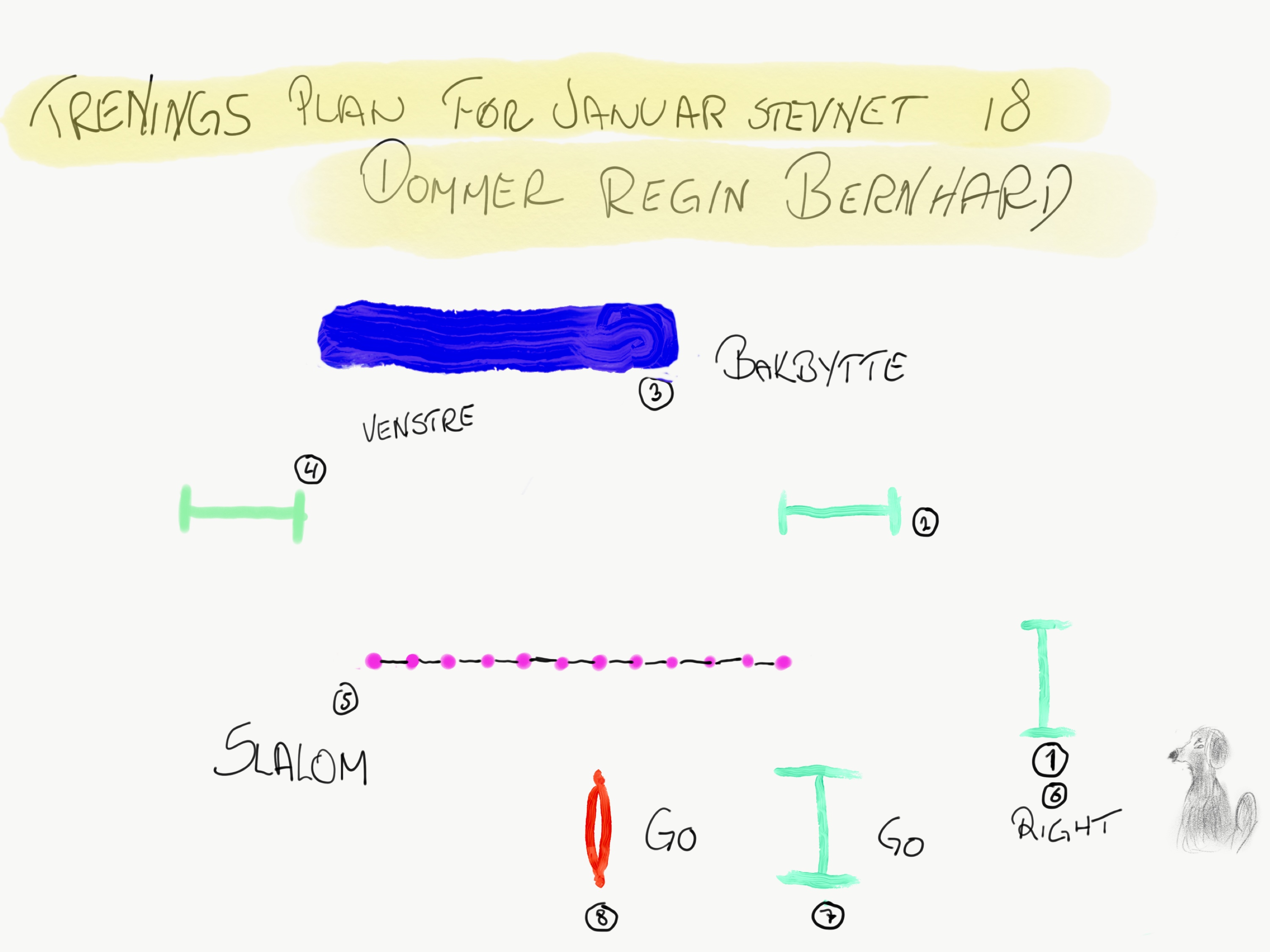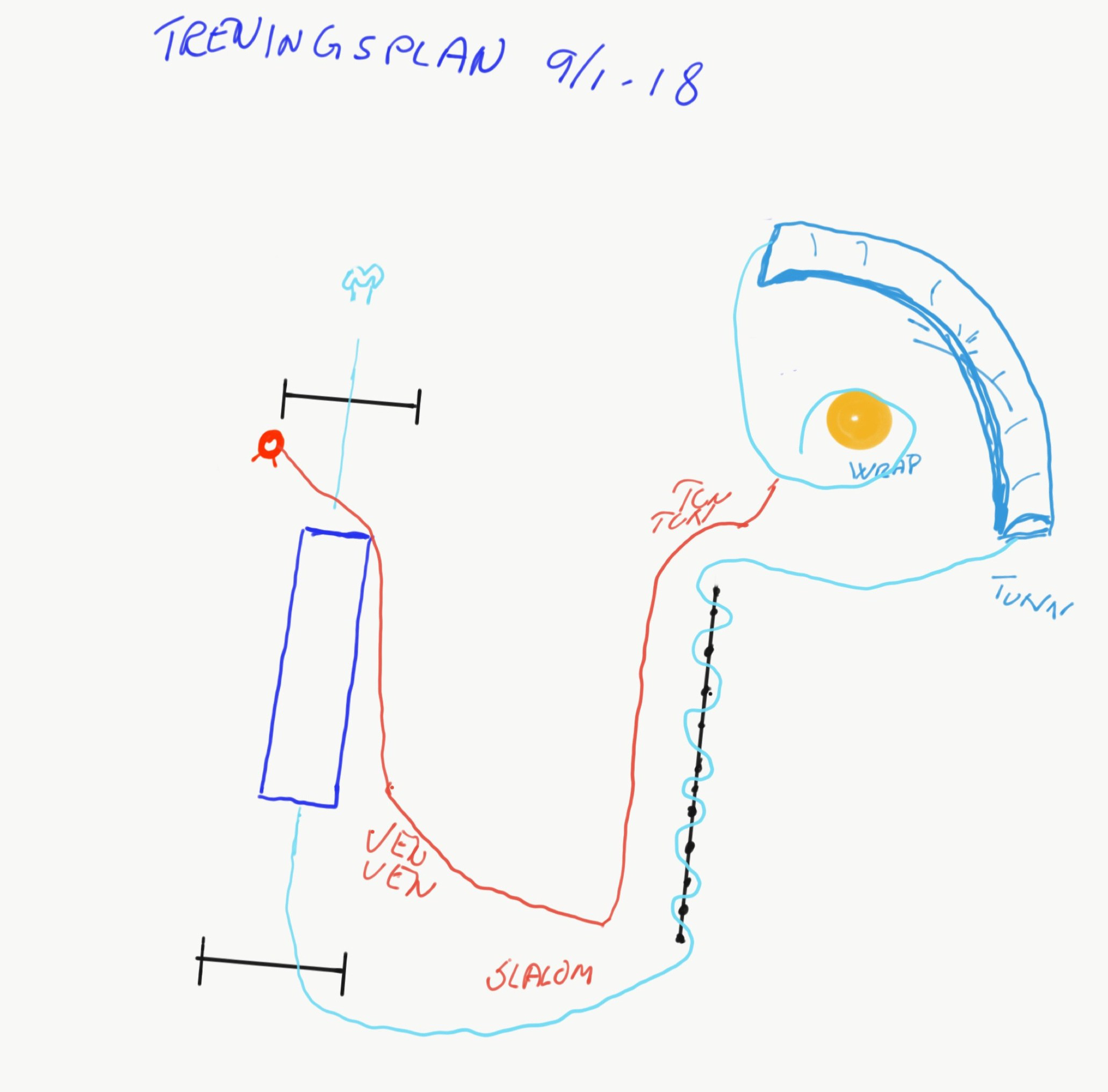 PS! Det står bakbytte på tegningen, men det e det jo selvsagt ikke. Det e bakbytte etter slalommen når eg har henne på høyre side.